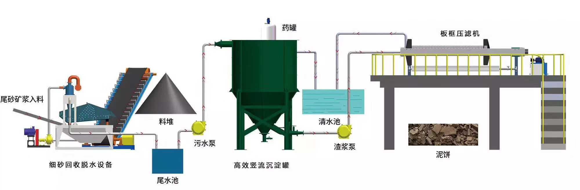 近年來,由于河道采砂弊端較大,建筑用沙等多數(shù)使用機(jī)制水洗沙,而洗沙廠在日常生產(chǎn)中會產(chǎn)生大量的污水。沖沙污水含有大量的泥沙、雜質(zhì)和懸浮物,沖沙污水的濁度相對較高。簡單的自然沉淀很難滿足日常生產(chǎn)的需要,但不經(jīng)處理直接排放會造成環(huán)境污染,對環(huán)境保護(hù)影響很大。因此,沖沙污水必須妥善處理。處理后的污水不僅可以回收利用,而且處理后產(chǎn)生的沉淀沉淀物經(jīng)過壓濾機(jī)處理后可以進(jìn)行填埋,不會造成污染。